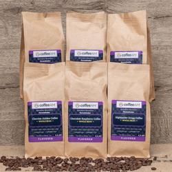 This is a generous offering of six 1/2lb sample packs that allows you to explore our vast selection of flavored coffee. Worthy of any occasion, these flavored coffees are certain to satisfy anyone's taste! We rotate different flavors every few weeks, so it can be ordered repeatedly; each time you order a Gourmet Flavor Sampler, you will experience a new temptation of coffee flavors!