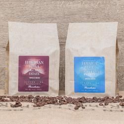 When you want only the best coffee in the world, look no farther than our Jamaican & Kona Gourmet Coffee Gift Set! This gift box contains a 1lb bag of our finest Jamaica Blue Mountain Estate, as well as another 1lb bag of our 100% Hawaiian Kona 'Volcanic Estate' gourmet coffee.