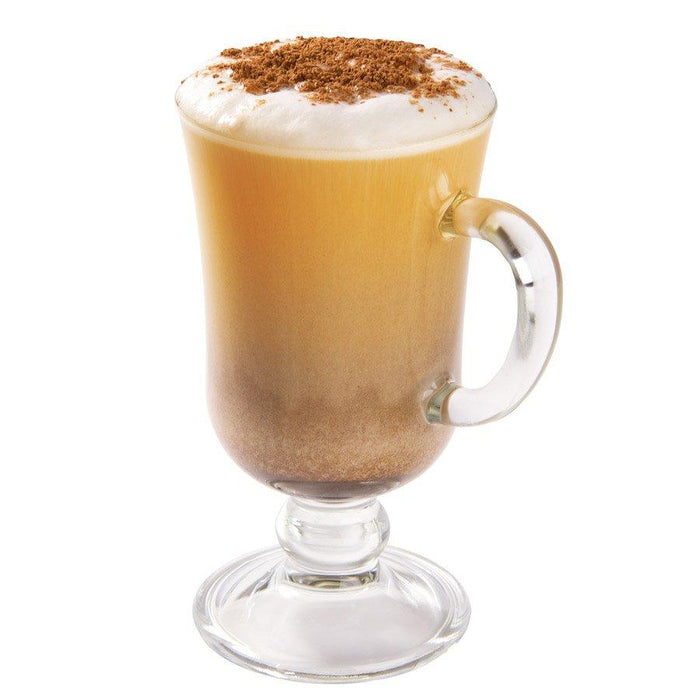 Combine sauce, syrup and espresso in 12-oz. mug. Stir until well combined. Pour steamed milk into mug; stir to combine. Top with froth from steamed milk. Sprinkle with ground cinnamon.| Glass Size | Ghirardelli Sweet Ground Chocolate Sauce | Monin Orange Syrup | Espresso | Steamed Milk |